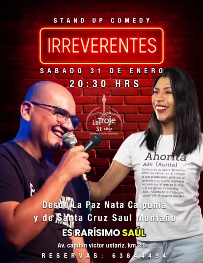 Desde La Paz, Nata Calpumia y desde Santa Cruz, Saúl Montaño llegan con un show de stand up directo, honesto e irreverente.
