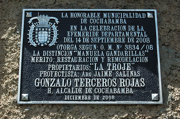 Declarada Hecho Arquitectónico de Valor Histórico Cultural por el Honorable Concejo Municipal de Cochabamba.